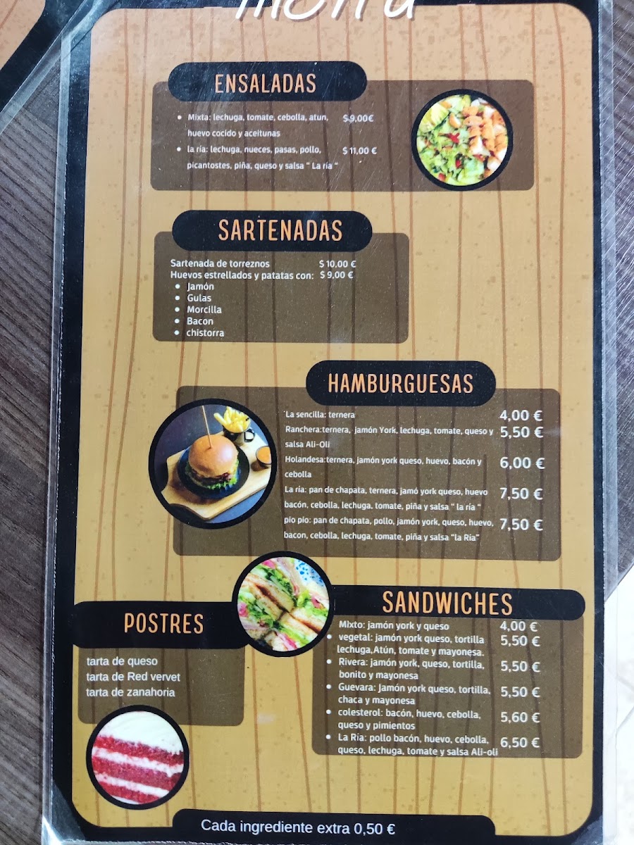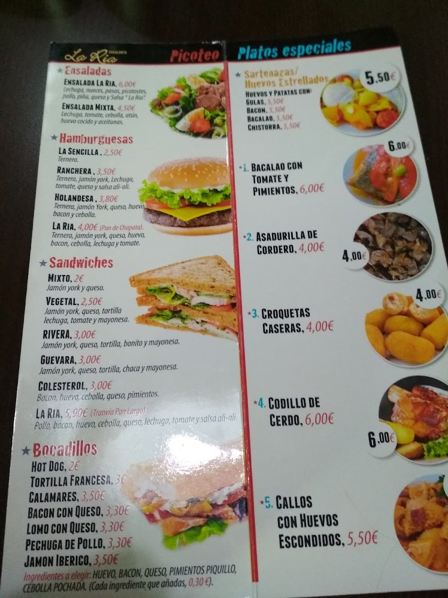 The menu at Cafe La Ria shines brightly with a diverse array of offerings. Guests can indulge in rich, aromatic coffee paired with delicious bocadillos and refreshing orange juice, all at an incredibly reasonable price of just €7. In addition, the café serves a variety of delectable pinchos and Latin American favorites, including arepas, empanadillas, and bunuelos.
